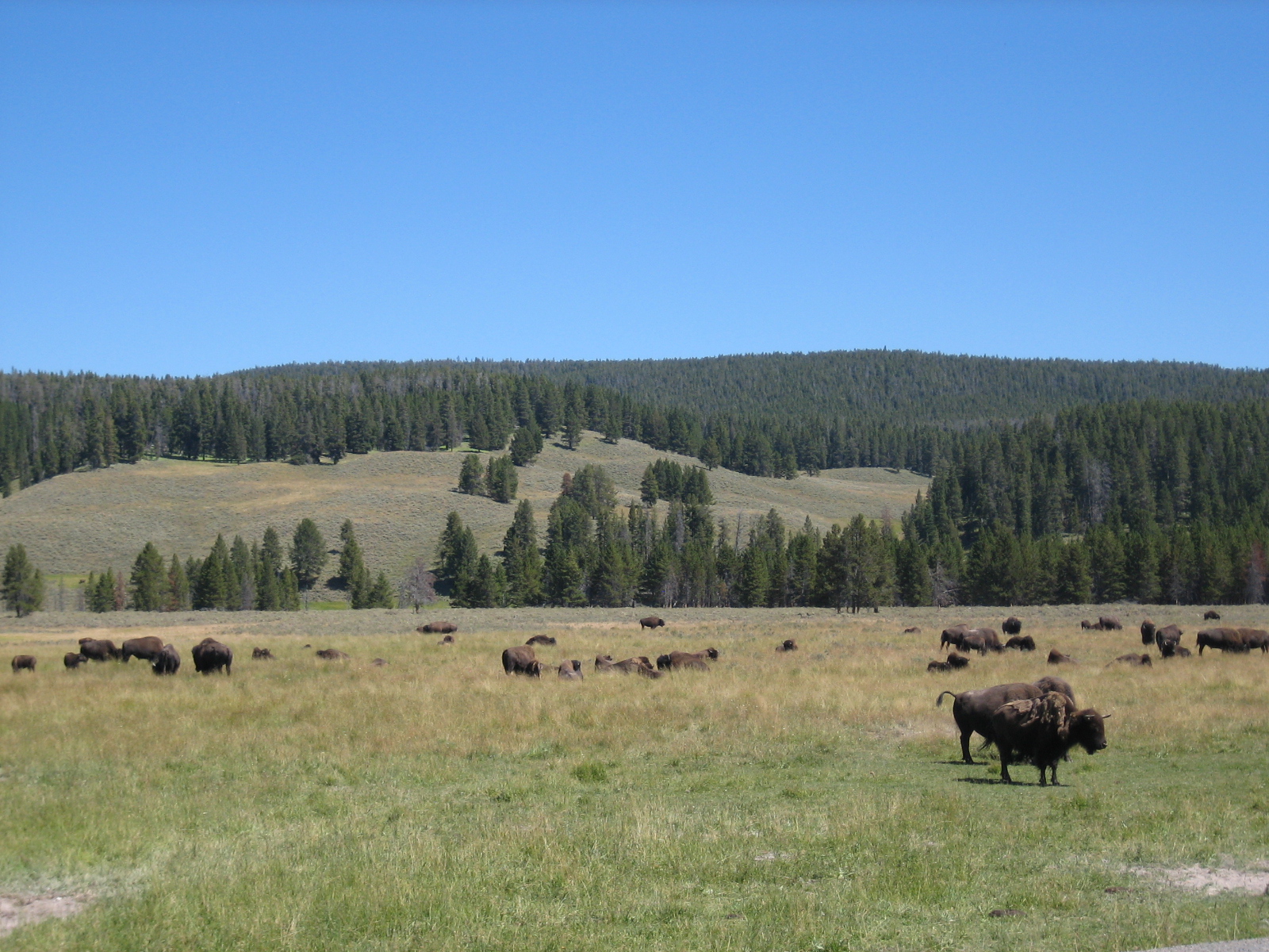 จริง ๆ แล้วเยลโล่สโตนมีความหลากหลายของสัตว์ป่านา ๆ ชนิดค่ะ แต่สัตว์อีกชนิดที่ทำให้เราและนักท่องเที่ยวตื่นเต้นได้ ตลอดทริปคือควายป่าไบสั่น(Bison) มันจะออกมาให้เห็นตลอดการเดินทางเลย ตัวมันจะใหญ่โตมาก ๆ ชอบอยู่รวมกันเป็นฝูงใหญ่ค่ะ บางฝูง มีจำนวนเป็นแสน ๆ ตัวเลย หน้าตื่นตาตื่นใจมาก เราพบเห็นมันได้ทุกที่ เลยค่ะ เป็นสัตว์ที่ดูเชื่องช้าใจดี แต่ผู้อนุรักษ์บอกว่า นักท่องเที่ยวถูกเจ้าควายไบสั่นทำรายมากกว่าถูกหมีทำร้ายสะอีกในปีหนึ่งๆ