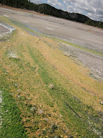 สถานที่ที่เราไปแล้วนึกขำระหว่างเดินชมอยู่นั้น น่าจะเป็นพวกบ่อกำมะถันต่าง ๆ เพราะเราจะเห็นคนที่เดินสวนไปสวนมา ใช้เสื้อปิดจมูกตลอดเวลา เพราะเจ้าบ่อกำมะถันพวกนี้ มีกลิ่นที่ไม่น่าดมเอาสะเลย ถ้าใครไม่เคยได้กลิ่นก็ไม่น่าจะนึกออก แต่ขอบรร ยายว่า เหม็นเหมือนคนผายลมค่ะ ฮ่าๆๆ ใช่ค่ะ ตด นั้นแหละ คือกลิ่นแบบนั้นจริง ๆ แต่ถ้ามาถึงเยลโล่สโตนแล้วไม่ได้ดม กลิ่นตด เอ้ย!!! กลิ่นกำมะถันพวกนี้ก็ถือว่ามาไม่ถึงแน่นอน เพราะก็เป็นจุดที่นักท่องเที่ยวให้ความสนใจแวะมาชมกันอยู่ตลอดทั้งวัน แต่ขอบอกว่า ทิวทัศน์โดยรอบสวยงามมาก สีของแต่ละบ่อจะแตกต่างตามแร่ธาตุ หรือ จุลินทรีย์ และแบคทีเรียที่สามารถเติบโตได้ใน อุณหภูมิน้ำที่แตกต่างกันออกไปทำให้เกิดเป็นสีสันสวยงามแปลกตาแบบที่เราไม่เคยเห็นที่ไหนค่ะ